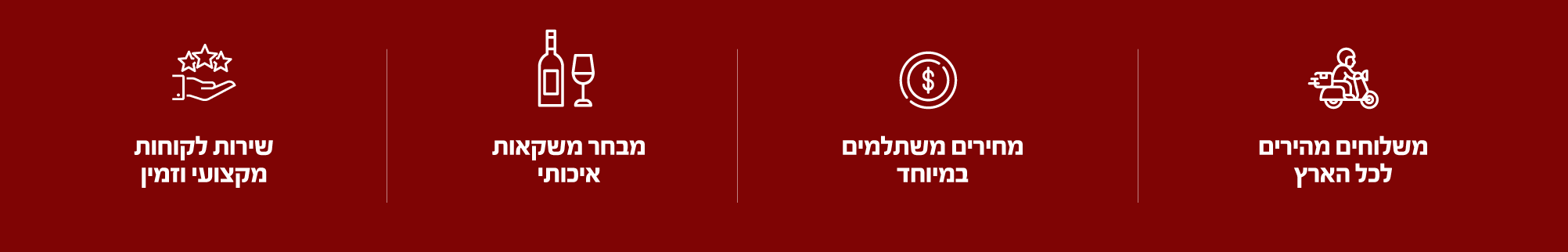 מאז 1980 אנחנו מגישים ללקוחותינו את מיטב המשקאות – מיין בוטיק ועד וויסקי נדיר, ממשקאות קלים ועד קוניאק משובח.